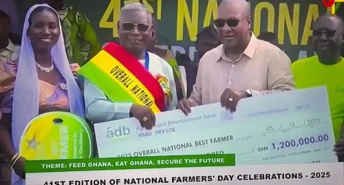Abraham Kwaku Adusei, an 83-year-old farmer, emerged the overall National Best Farmer for 2025, going home with coveted prizes, including a cash prize of 1.2million Ghana cedis (about 105,000 U.S. dollars), a brand-new tractor with implements, a power tiller head with rotary accessories, motorized sprayers, assorted chemicals, wellington boots, and machetes.